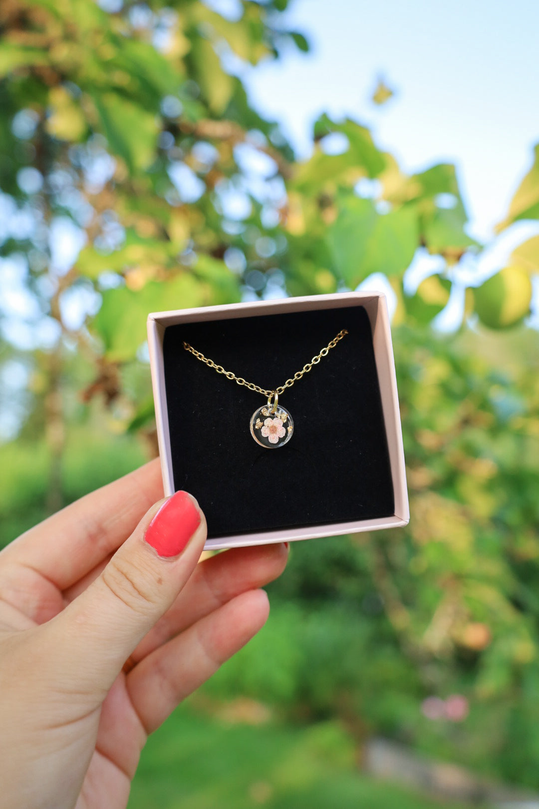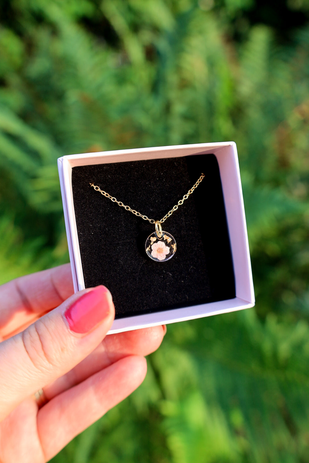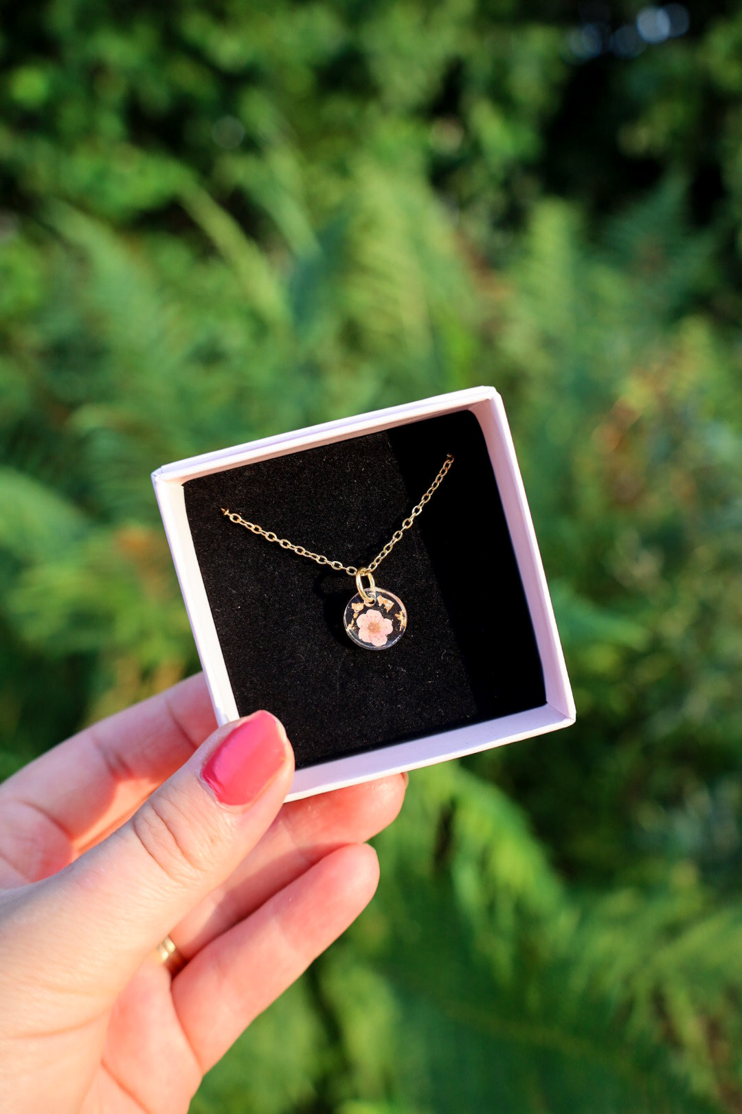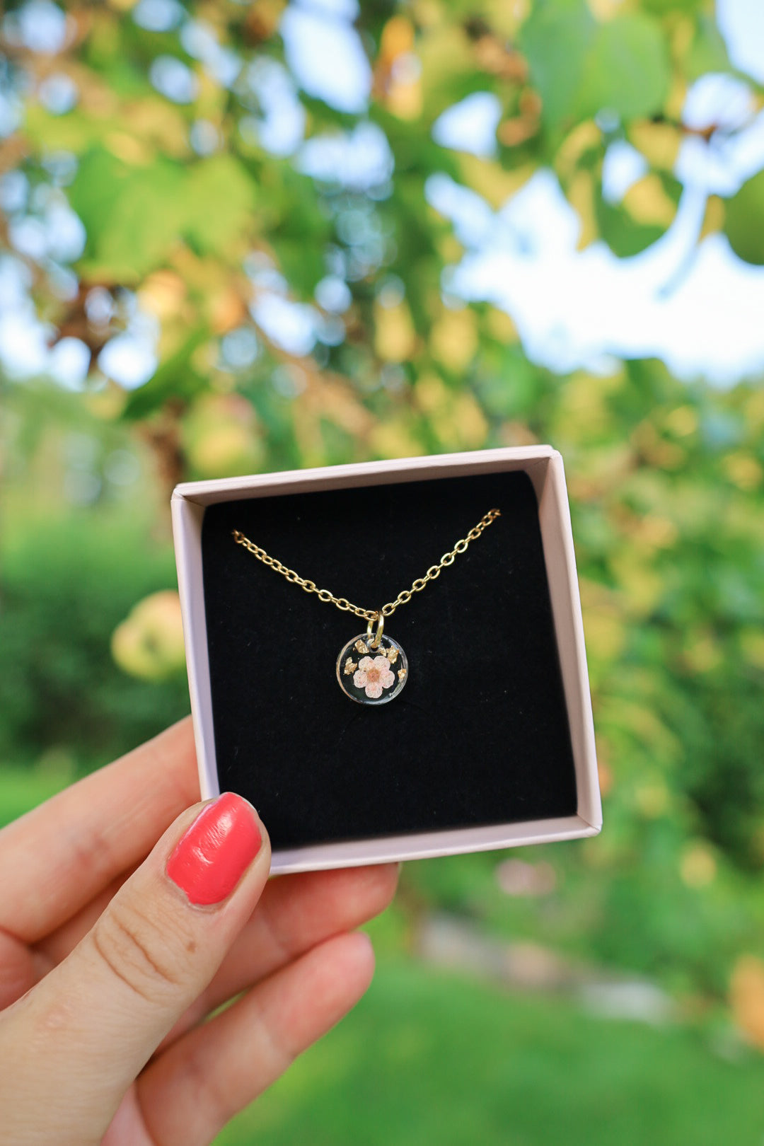 Kaulakorua koristaa aito kuivattu kukkanen sekä lehtikulta✨