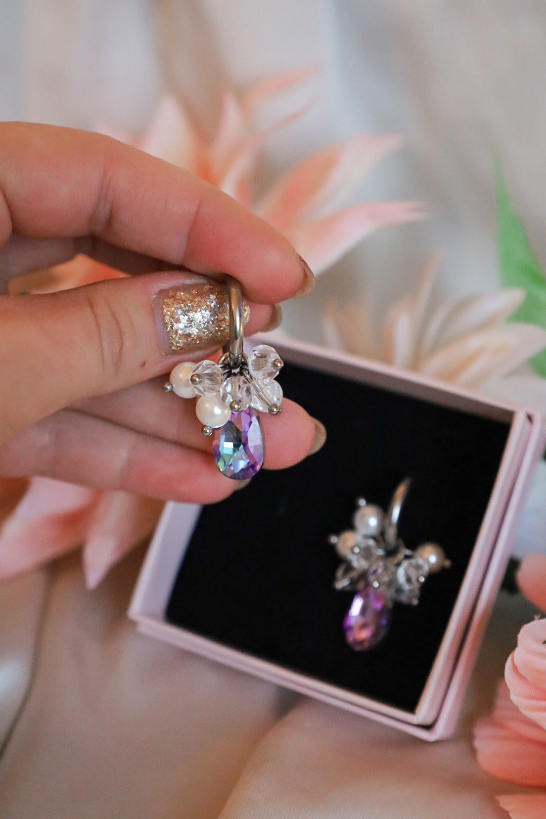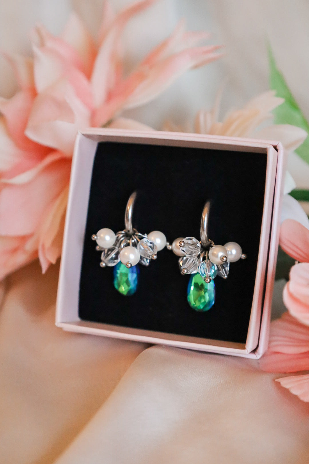 Korvakoruissa kimaltavat erilaiset lasihelmet ja -kristallit sekä shell pearl -helmet. Korun metalliosat ovat ruostumatonta terästä tai kullattua ruostumatonta terästä.