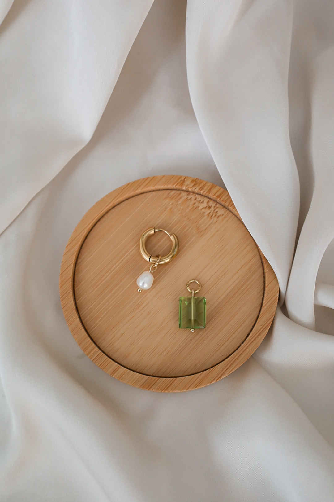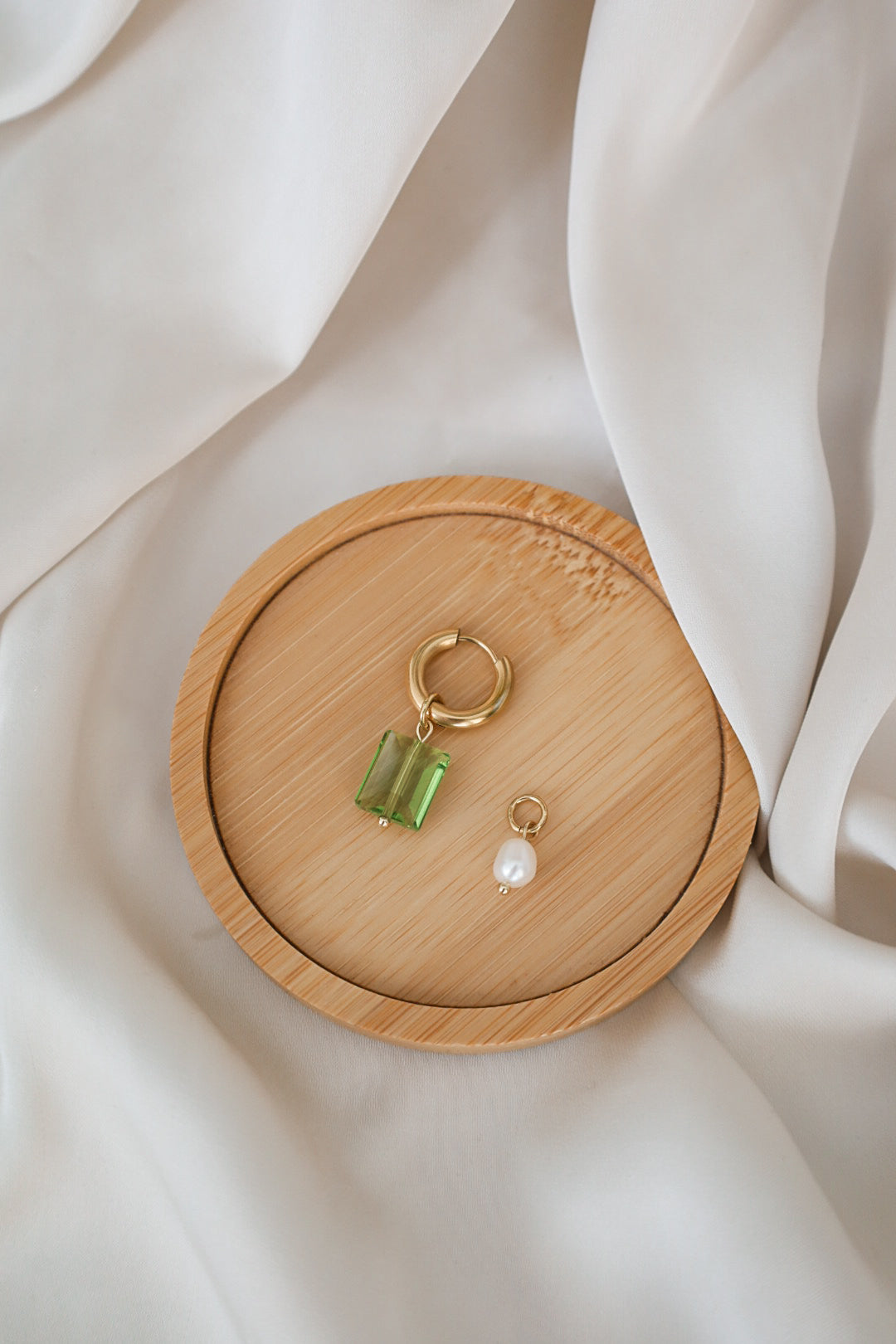 Valittavissa pelkät lasihelmet tai lasihelmi sekä makeanvedehelmi. Riipukset ovat irrotettavissa renkaista.
