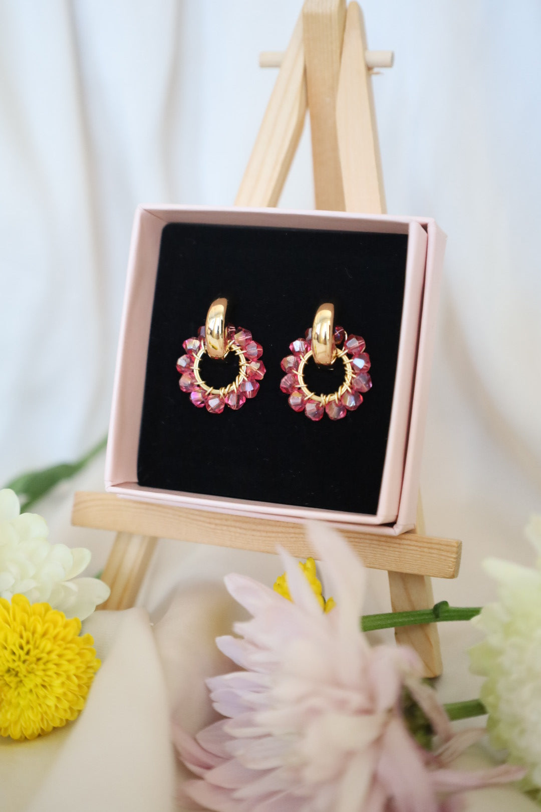 Limited edition versio Olivia -korvakorumallista! Kristallisissa Olivia -korvakoruissa säihkyvät lasikristallit, jotka on käsin punottu renkaaseen. Korvakoruja on saatavilla vain 2kpl/väri
